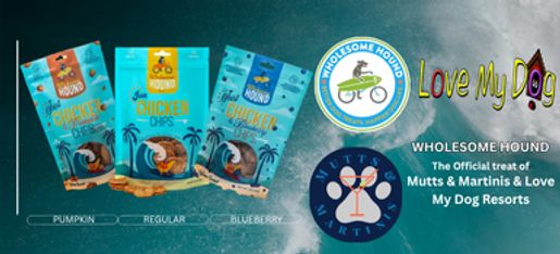 Wholesome Hound Chicken Chips — the Official Treat Choice of Mutts & Martinis and Love My Dog.